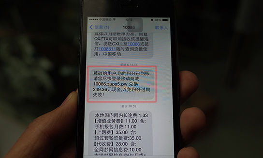 據(jù)悉,類似的10086短信詐騙從去年7月開始就陸續(xù)被媒體曝光。這種新型騙術(shù)多以“積分兌換”的形式出現(xiàn),只要用戶按其提示輸入相應(yīng)銀行及身份信息,不法分子即可通過鑲嵌在短信中的木馬陸續(xù)轉(zhuǎn)走銀行卡上的金額。