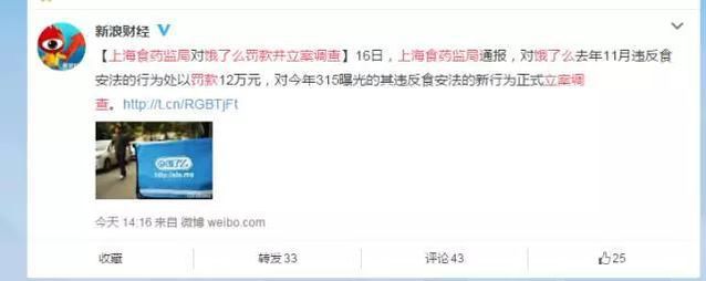 還拿倒運悲催的餓了么為例,新浪新聞對此進行了查詢,發(fā)現(xiàn)有七成網(wǎng)友反應(yīng),會影響對餓了么的使用,并且該公司還被處罰了12萬元。